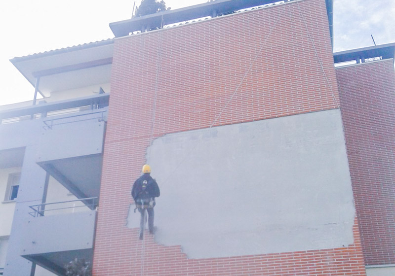 - Purge d'éléments instables en façade (Enduits, épaufrures, parements)